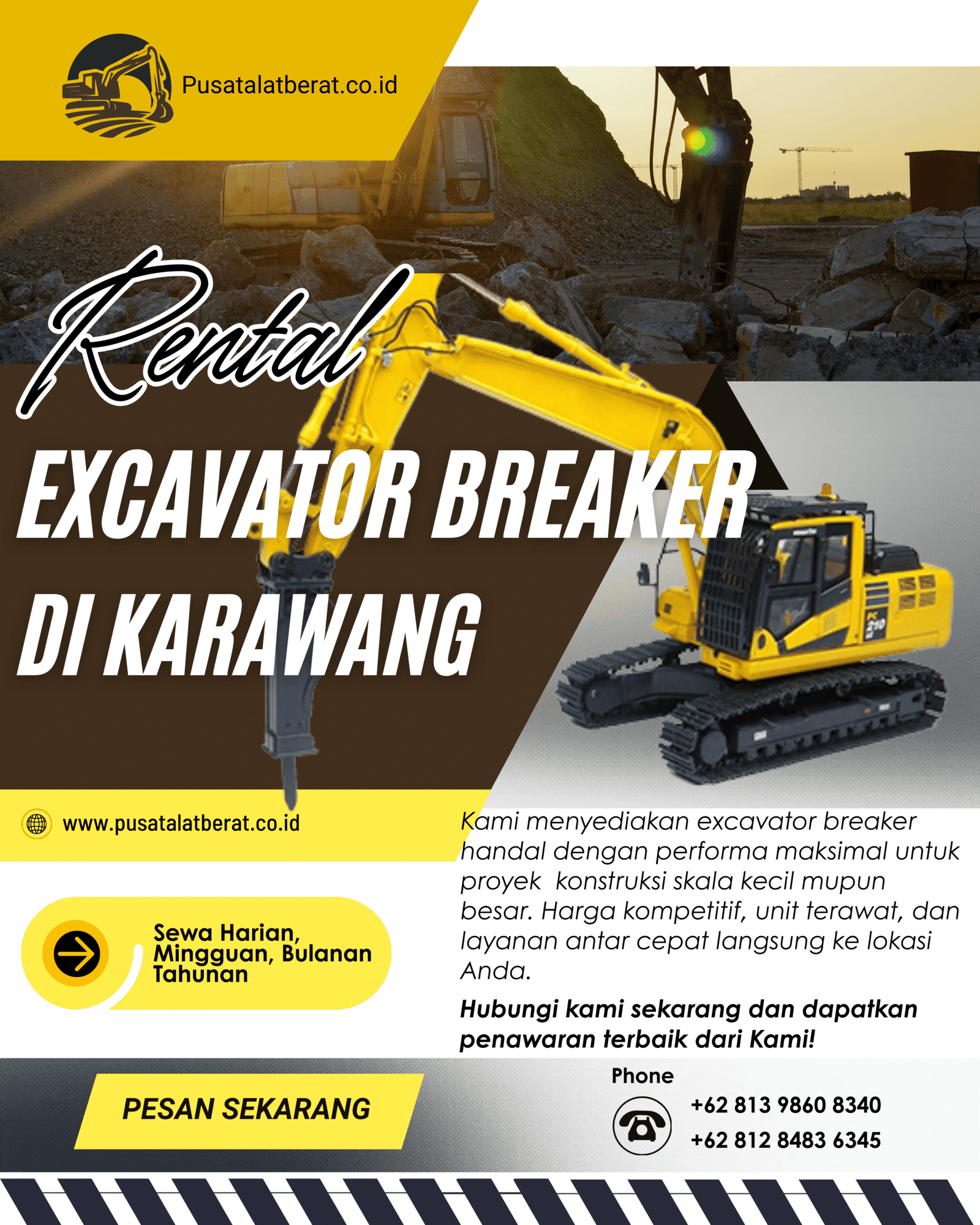 - Pemesanan sewa excavator breaker dapat dilakukan minimal H-2 dari schedule sewa alat.