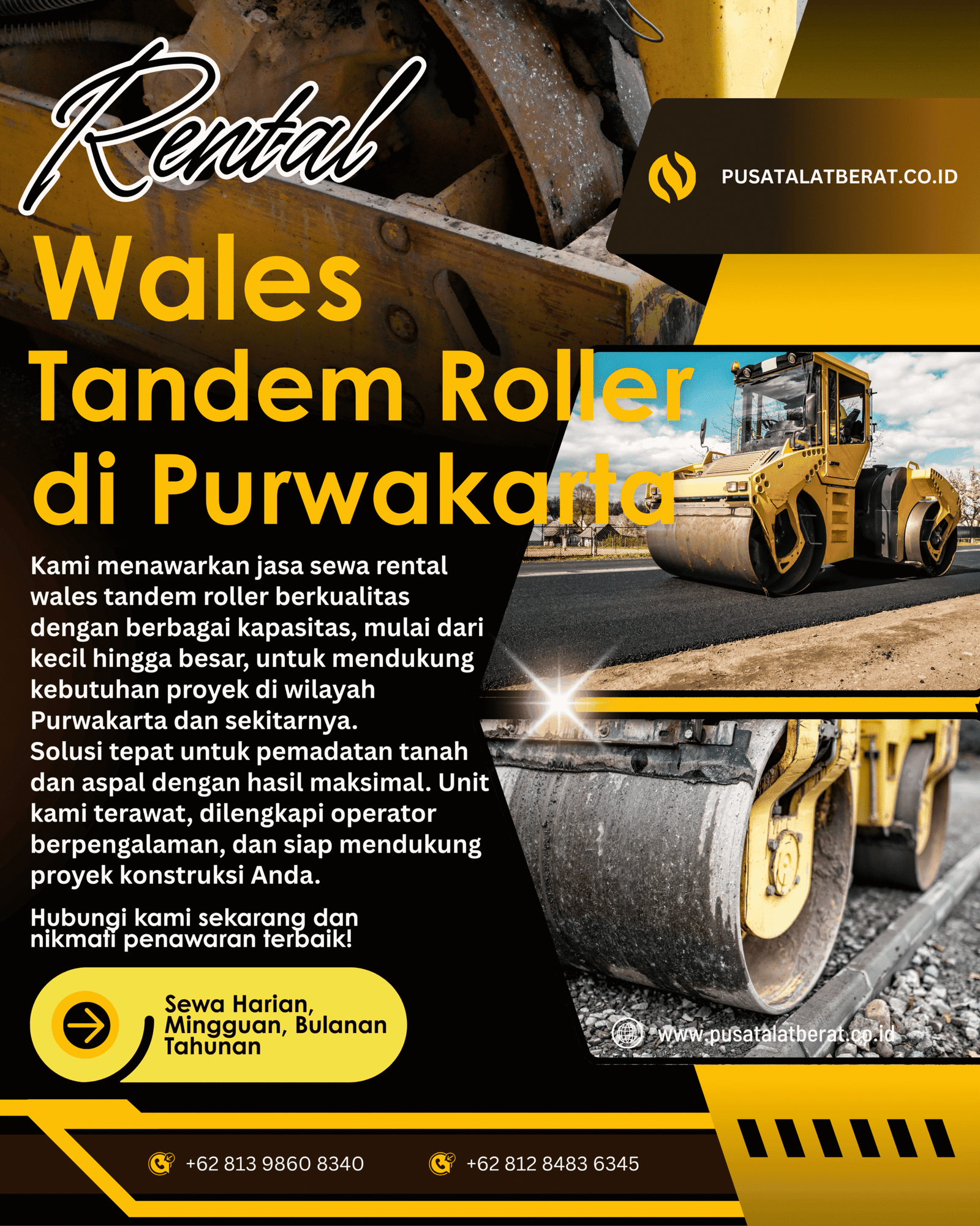 “Jangan ragu untuk menghubungi kami sekarang dan dapatkan penawaran terbaik untuk sewa wales tandem roller di Purwakarta. Bersama kami, proyek Anda akan lebih efisien, berkualitas, dan sesuai standar.”